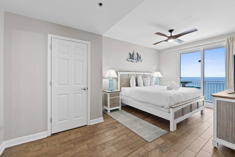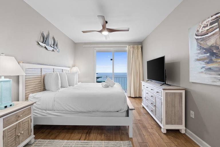 * Bedroom 1 - King Bed, Gulf View, 50" TV, Balcony Access, En Suite Bathroom