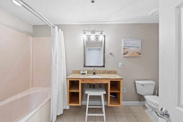 Perfect for larger families or couples traveling together, the condo features a full kitchen and two private suites and a guest bedroom. One of the suites is an efficiency lockout unit, complete with a mini-fridge, sink, microwave, and coffee maker for added convenience.