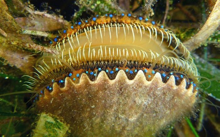 Bay scallops are found in shallow, nearshore waters along the Gulf Coast. To identify bay scallops look for dark shells and tiny blue eyes lining the outer rim of the shell. You can wade into the shallows and scoop up scallops by hand, or snorkel and swim for them. Scalloping may be easier on a boat, as you can maneuver from seagrass bed to seagrass bed.