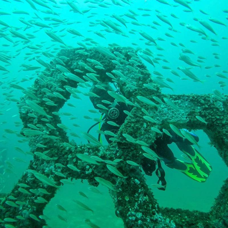 The sculptures quickly attract a wide variety of marine life and, over time, transform into a living reef. It provides a much-needed habitat for local marine life. Marine scientists, wildlife management professionals, ecologists, and students, are given an opportunity to study marine life and measure the impact of artificial reef systems on the gulf ecosystem at this thriving eco attraction.