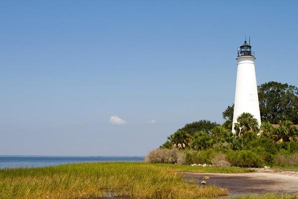 Visitors will enjoy wildlife at its finest at this coastal jewel where you can explore eight miles of quiet shoreline with birds, deer, and possibly a bobcat sighting. This coastal wilderness boosts freshwater pounds, tidal marshes, and gulf front beaches. There is plenty of inshore and offshore fishing. The Bald Point State Park offers picnic pavilions, restrooms, and a fishing dock. Park visitors can enjoy beaches, bicycling, birding, canoeing, fishing, hiking, kayaking, swimming, and, of course, observing the abundant wildlife. The nearby St. Marks Wildlife Refuge is another popular destination for nature lovers.