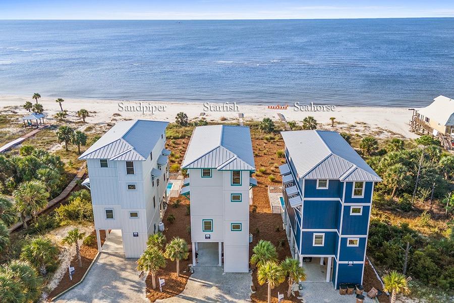 Panhandle Getaways has three exclusive beach houses in Indian Pass near Cape San Blas where you can host your special celebration. Each home accommodates up to 24 guests and has six bedrooms, 6.5 baths, private pools and each is pet friendly, too. With these beachfront houses located next to each other, you can book individually or book all three for multiple families and the entire wedding party. Details about each of these beachfront homes, Sandpiper, Starfish, and Seahorse, can be found on the Panhandle Getaways website.
