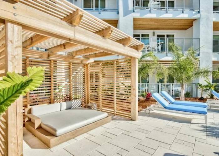At the center of the Pointe on 30A complex is the award-winning resort-style pool featuring custom-made cabanas, a hot tub, tanning deck, and fire pits. Lined with palm trees and the natural vegetation of the coast, it's a perfect setting to relax and decompress. The Pointe on 30A also features a covered space known as the Cava Lounge which is and outdoor retreat outfitted with flat-screen TVs, ultra-modern lounge furniture, and ambient music. There is also a state-of-the-art fitness center, hot tub, and electric vehicle charging on site.