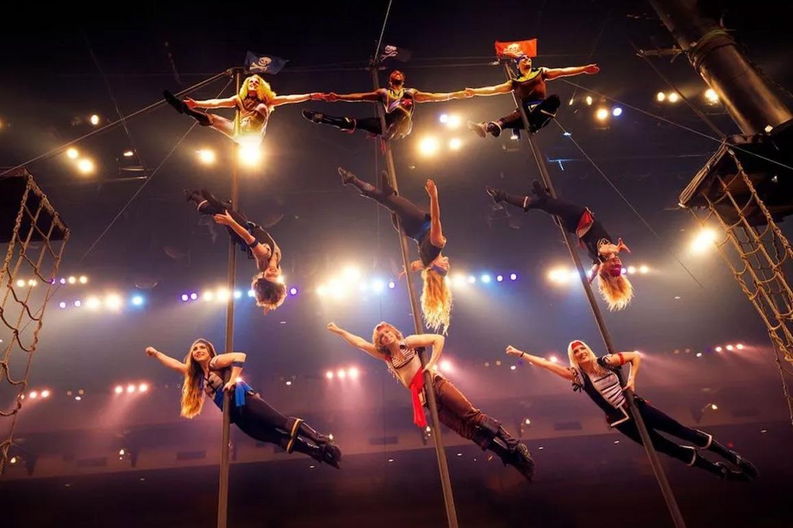 Pirates Voyage Dinner & Show is a high-energy dinner theater in Panama City Beach featuring swashbuckling pirate battles, mermaids, live acrobatics, and a delicious four-course pirate feast that makes for an unforgettable night of family-friendly entertainment.