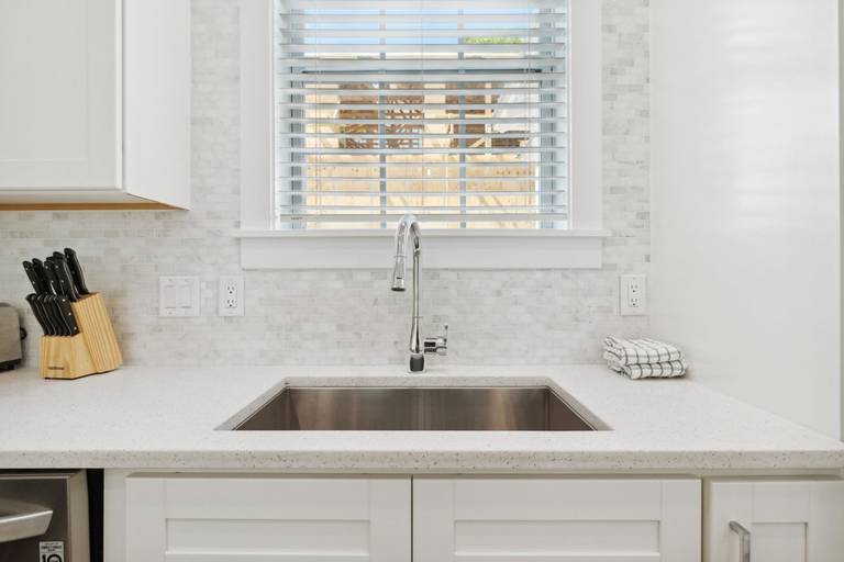 This pet-friendly home features gorgeous furnishings throughout with detailed woodwork, shiplap, hardwood floors, quartz counters, 2 main suites, spacious covered decks and lush landscaping offering additional privacy for guests. Guests also enjoy the fire pit and cornhole game in this popular vacation rental.