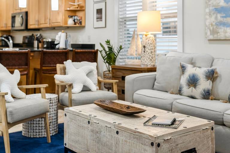 Clean, bright, and perfect for a beach-going family, our bungalow is just the place to make the best beach memories while still being tucked away from the hustle and bustle of the city. You'll be treated to a deeded beach access, as well as a golf cart, four bikes, and a private saltwater pool to make your days even more relaxing and enjoyable.