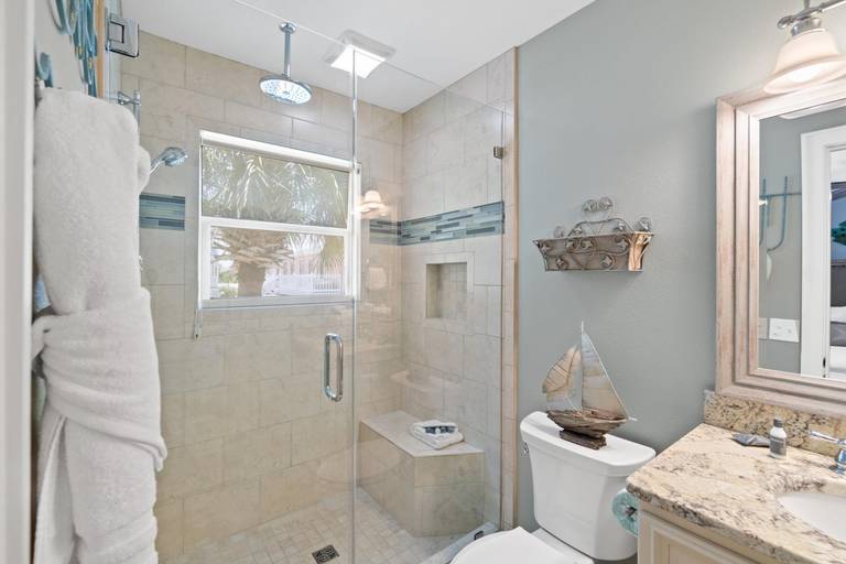 A starter pack of toiletries, paper products, and detergents is provided for your arrival. Guests should plan to purchase additional supplies for the remainder of their stay. Bed linens and bath towels are included; please bring beach towels for the beach. Surveillance cameras are located at the front and back doors.