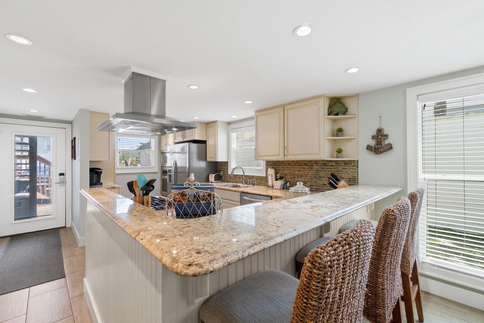 Bahama West Family is a unique rental that combines two adjoining homes into one expansive retreat. Guests enjoy double the space, including multiple kitchens, living areas, and dining spaces, making it easy for everyone to spread out while staying together close to the beach.