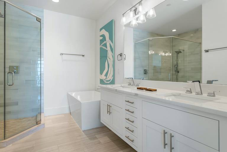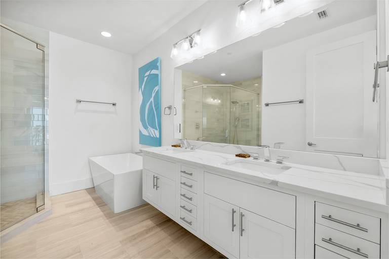 This beachfront vacation home is actually two homes side by side with each having its own private pool and sleeping a total of 24 people. Each home has 5 bedrooms and en suite baths plus spacious living and dining areas not to mention a chef's kitchen and gorgeous views from every level. Please see the features for each home below.