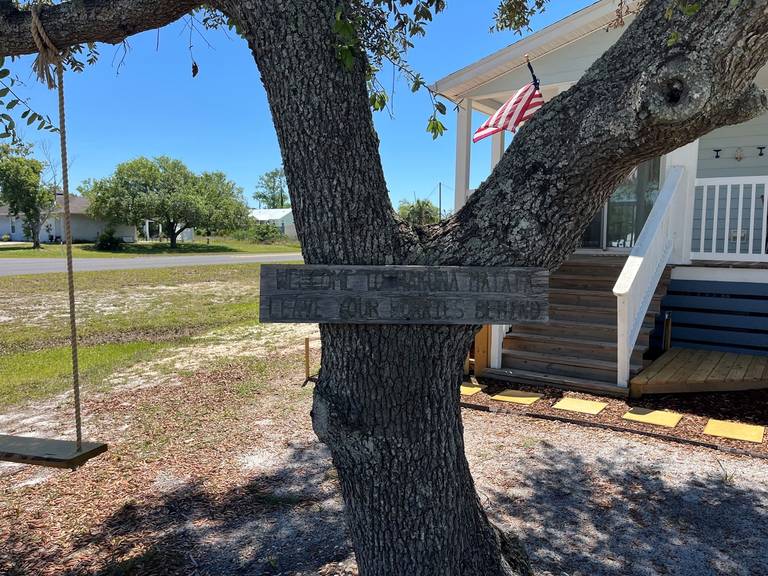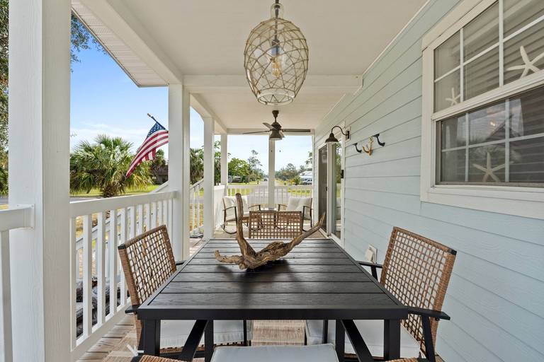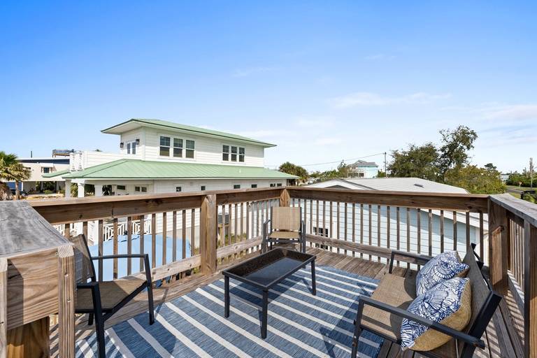 Pet friendly beach house rental, Hakuna Matata, located in St Joe Beach, Florida by Panhandle Getaways is a 3 bedroom, 2 bathroom vacation home complete with all of the conveniences of home. Beach is a very short walk across the street.