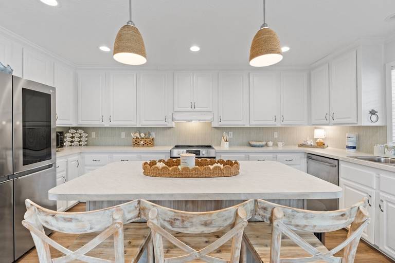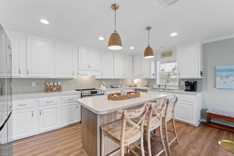 Panhandle Getaways furnishes a few essential items for guests to utilize until they can get to the grocery store. Initial Supplies include: Dishwasher soap, small washing machine powder, each bathroom has amenities (like hotel but NOT restocked) shampoo, conditioner, soap bar. One roll of toilet paper in each bathroom and one paper towel roll in the kitchen. All bed linens and towels are provided. We encourage guests to bring beach towels for use at the pool and beach.