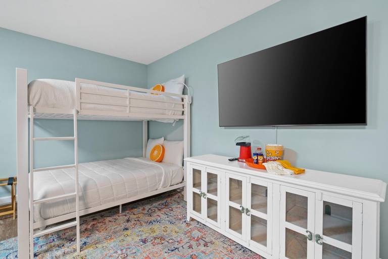 • Bedroom 4: Two Full-over-Full bunk beds, TV, sitting area (main floor)
