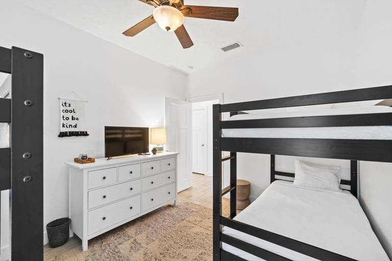 • Bedroom 3 – Two twin-over-twin bunks, 39” TV