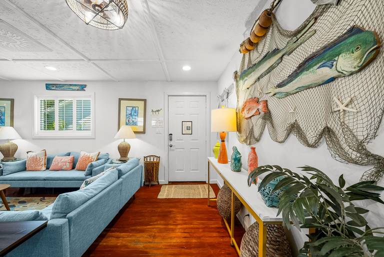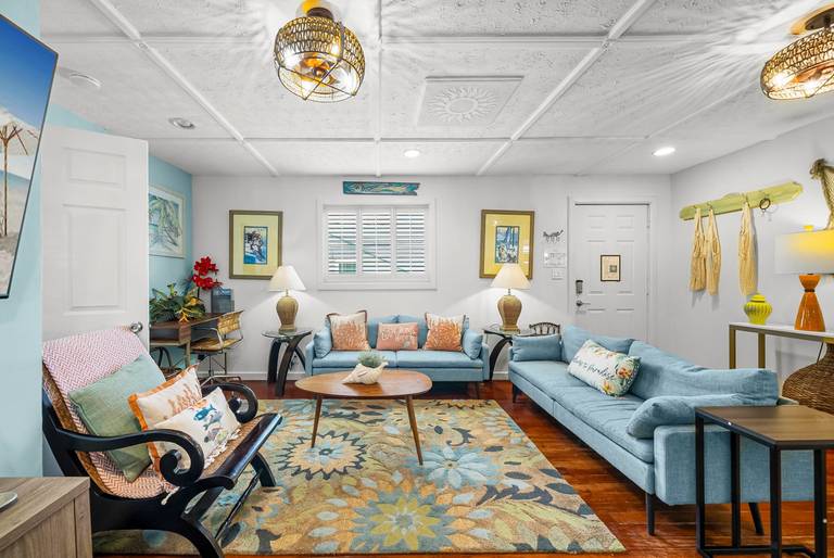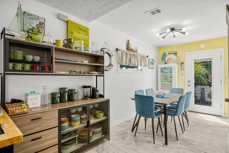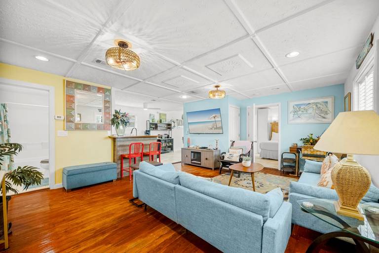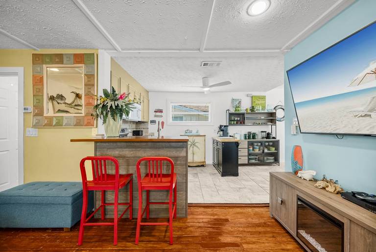 Inside, you’ll find bright, open spaces designed for gathering and unwinding. The fully equipped kitchen makes meal prep simple, and the spacious living area is perfect for streaming your favorite shows after a day on the Gulf.