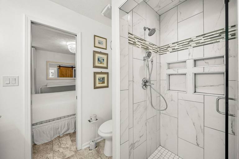 • Bedroom 1 – King bed, TV, en suite bathroom