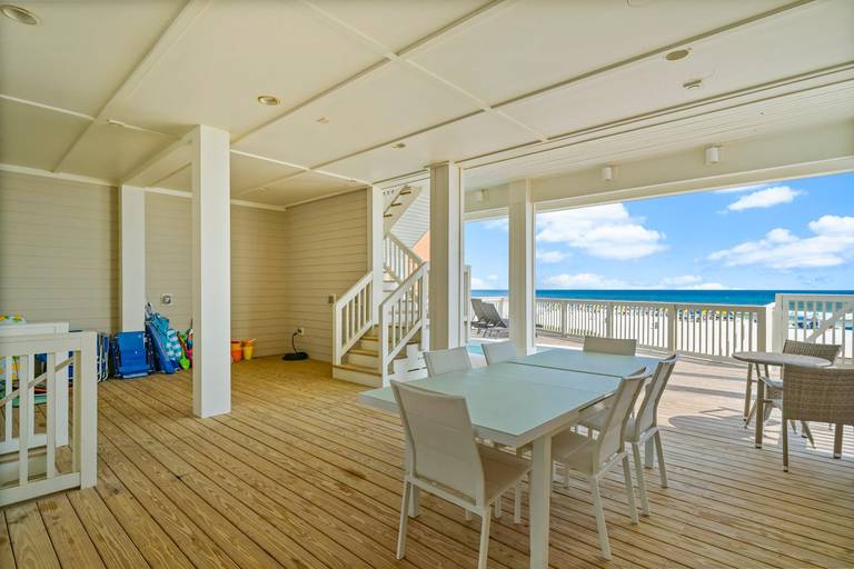 This luxury gulf-front home has five bedrooms with en suite baths and multiple balconies and decks to choose from. Watch the sun rise or set over the Gulf of Mexico from just about every angle. The splash pool overlooks the gulf for pure relaxation. No crowds on the beach because you will enjoy your own private stretch of the sugar white sand.