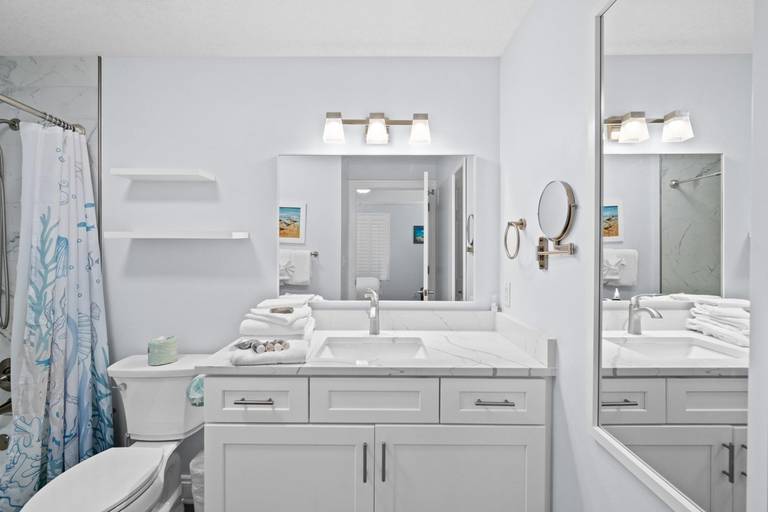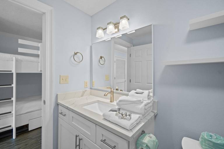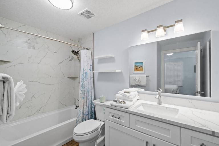 Panhandle Getaways furnishes a few essential items for guests to utilize until they can get to the grocery store. Initial Supplies include: Dishwasher soap, small washing machine powder, each bathroom has amenities (like hotel but NOT restocked) shampoo, conditioner, soap bar. One roll of toilet paper in each bathroom and one paper towel roll in the kitchen. All bed linens and towels are provided. We encourage guests to bring beach towels for use at the pool and beach.
