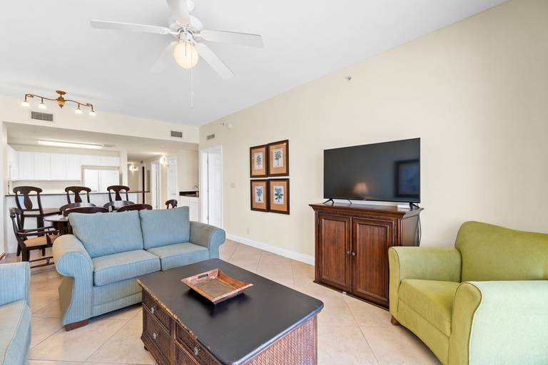 * Living Area with Gulf View, 50" TV