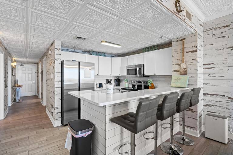 Panhandle Getaways furnishes a few essential items for guests to utilize until they can get to the grocery store. Initial Supplies include: Dishwasher soap, small washing machine powder, each bathroom has amenities (like hotel but NOT restocked) shampoo, conditioner, soap bar. One roll of toilet paper in each bathroom and one paper towel roll in the kitchen. All bed linens and towels are provided. We encourage guests to bring beach towels for use at the pool and beach.