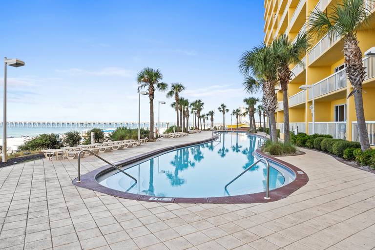 Calypso Beach Resort & Towers in Panama City Beach, Florida welcomes guests to a fantastic family friendly resort. Calypso boasts incredible gulf front pools and a beautiful private stretch of beach that families visiting can feel rest assured a spot on the beach with plenty of room. Calypso Resort & Towers offers condominium accommodations in a central location within walking distance to the infamous Pier Park. Stroll along the sandy beach or embrace the spectacular beach settings and sunsets from your balcony.