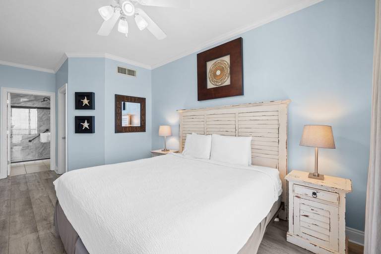 * Bedroom 1 - Gulf View, King Bed, TV, Balcony Access, En Suite Bathroom