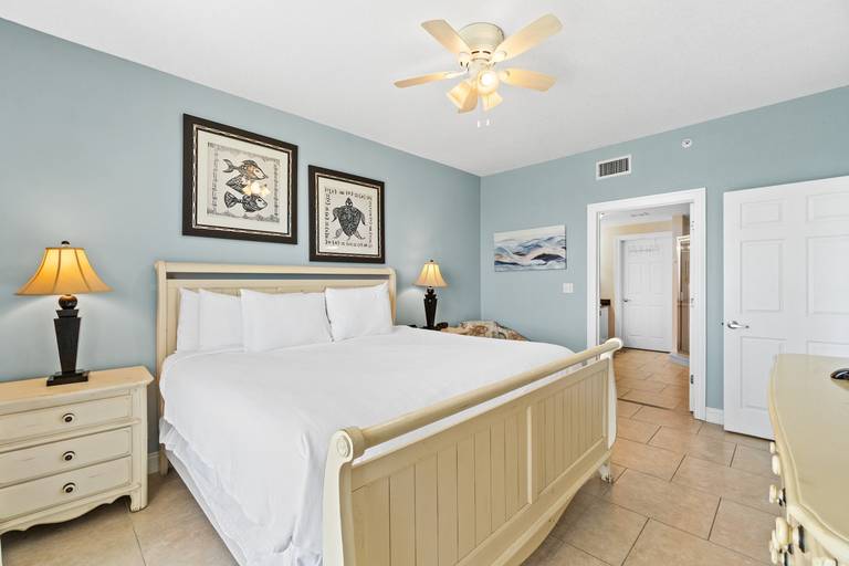 * Bedroom 1 - Gulf View, King Bed, TV, Balcony Access, En Suite Bathroom