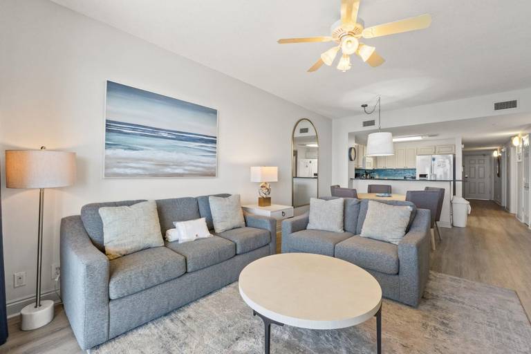 Panhandle Getaways furnishes a few essential items for guests to utilize until they can get to the grocery store. Initial Supplies include: Dishwasher soap, small washing machine powder, each bathroom has amenities (like hotel but NOT restocked) shampoo, conditioner, soap bar. One roll of toilet paper in each bathroom and one paper towel roll in the kitchen. All bed linens and towels are provided. We encourage guests to bring beach towels for use at the pool and beach.