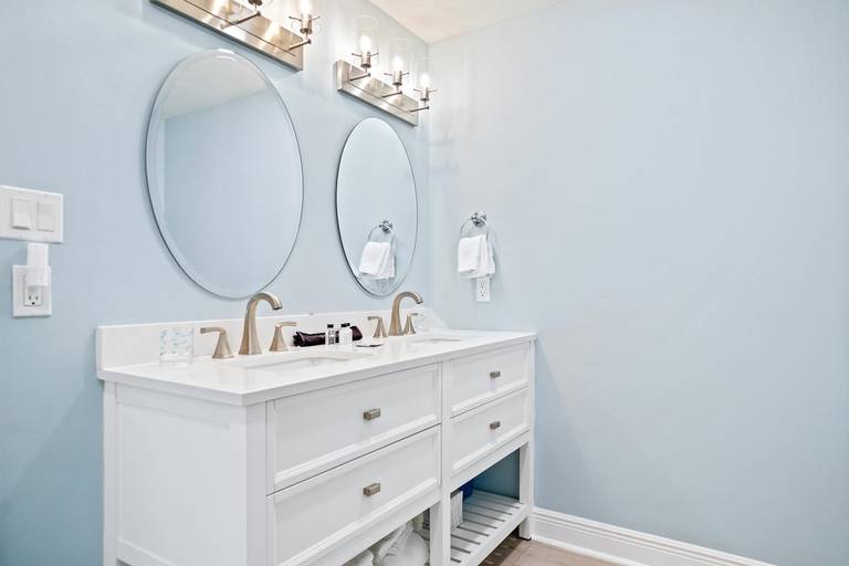 Guests will enjoy luxury flooring, paint, recessed lighting, shiplap throughout the entire condo, added built-in shelving on the wet bar, new 65” smart TV’s in the living room and master bedroom, and a 55” smart TV in the spare bedroom. Every room has a TV! This is the only unit in the building with double vanities in BOTH bathrooms which is ideal for big families, multi-couple trips, or even groups of friends staying at the unit. The master bathroom has a completely new walk-in shower, tiled from floor to ceiling.