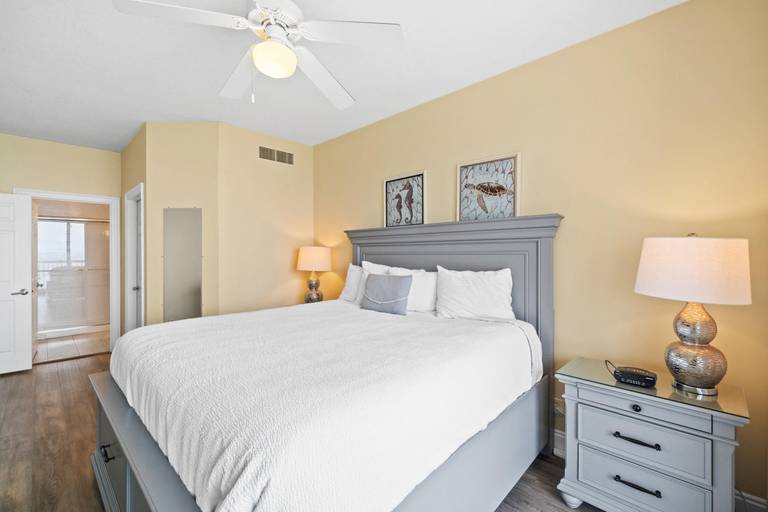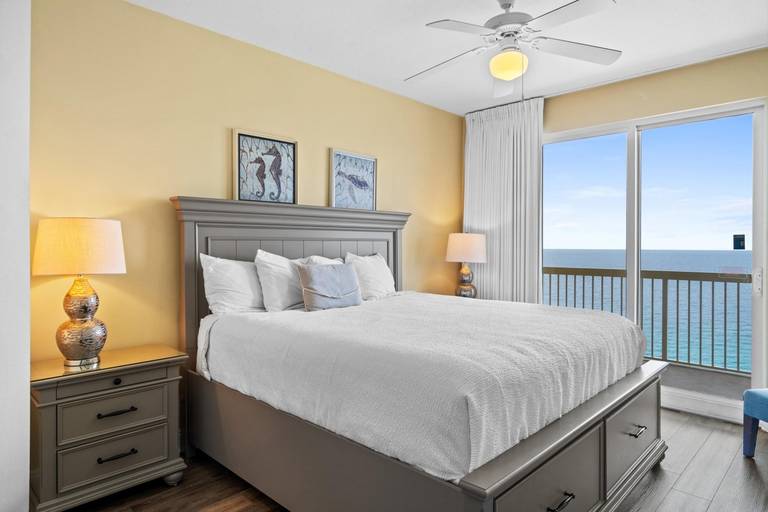 * Bedroom 1 - Gulf View, King Bed, 36" TV, Balcony Access, En Suite Bathroom