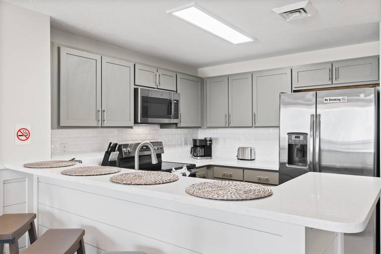 Panhandle Getaways furnishes a few essential items for guests to utilize until they can get to the grocery store. Initial Supplies include: Dishwasher soap, small washing machine powder, each bathroom has amenities (like hotel but NOT restocked) shampoo, conditioner, soap bar. One roll of toilet paper in each bathroom and one paper towel roll in the kitchen. All bed linens and towels are provided. We encourage guests to bring beach towels for use at the pool and beach.