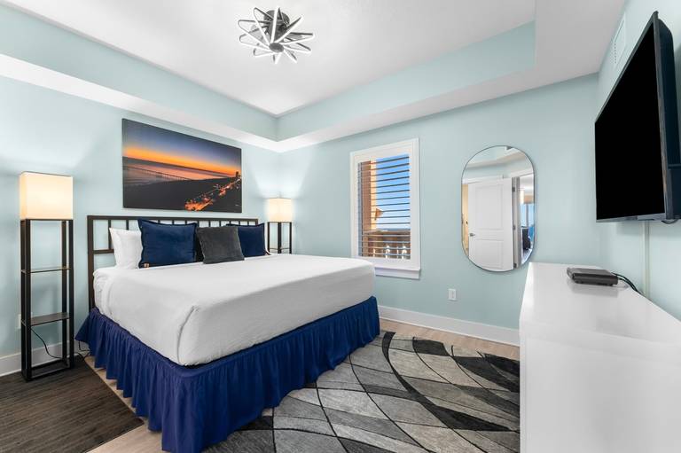 * Bedroom 1 - King Bed, TV, Balcony Access, En Suite Bathroom