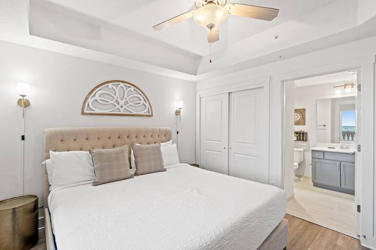 * Bedroom 1 - King Bed, TV, Balcony Access, En Suite Bathroom