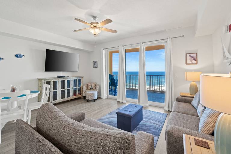 * Living Area - Gulf View, 65" TV, Balcony Access
