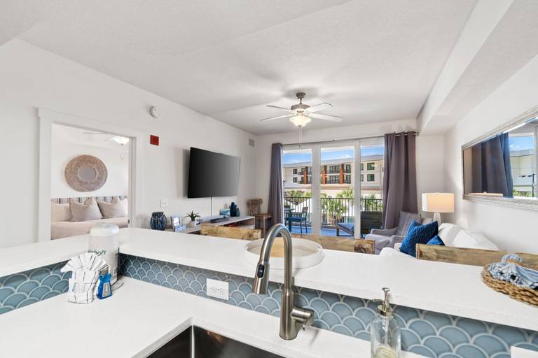 * Living Area - 65" TV and Queen Sleeper Sofa