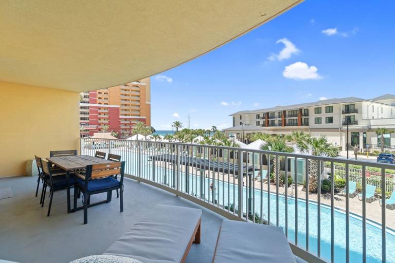 Calypso Resort Tower 3 rental 3-209 located in Panama City Beach, FL by Panhandle Getaways is a 1 bedroom, 2 bathroom vacation home complete with all of the conveniences of home. Free Activities included daily during your stay. 2nd Floor - Balcony overlooks the pool.