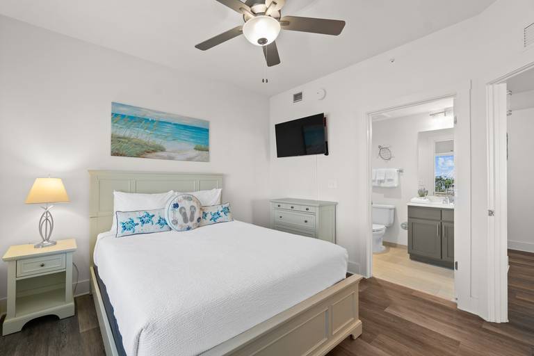 - 2nd Bedroom – Queen bed, smart TV, ceiling fan, en-suite bathroom.