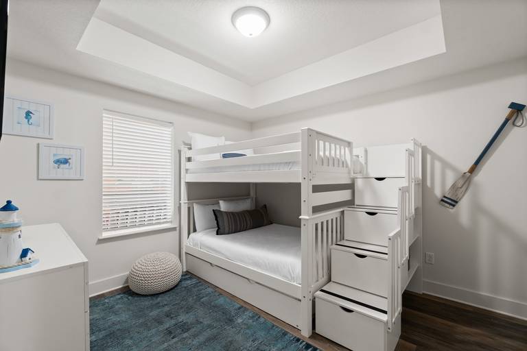 - 3rd Bedroom – Queen-over-Queen bunk beds + pull-out queen trundle, smart TV (perfect for kids!).