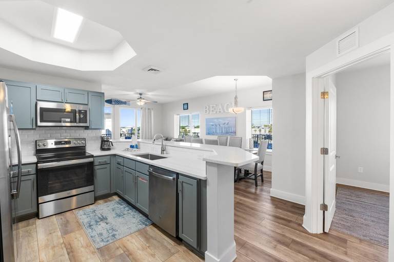 Panhandle Getaways furnishes a few essential items for guests to utilize until they can get to the grocery store. Initial Supplies include: Dishwasher soap, small washing machine powder, each bathroom has amenities (like hotel but NOT restocked) shampoo, conditioner, soap bar. One roll of toilet paper in each bathroom and one paper towel roll in the kitchen. All bed linens and towels are provided. We encourage guests to bring beach towels for use at the pool and beach.