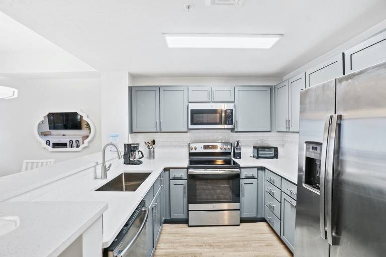 Panhandle Getaways furnishes a few essential items for guests to utilize until they can get to the grocery store. Initial Supplies include: Dishwasher soap, small washing machine powder, each bathroom has amenities (like hotel but NOT restocked) shampoo, conditioner, soap bar. One roll of toilet paper in each bathroom and one paper towel roll in the kitchen. All bed linens and towels are provided. We encourage guests to bring beach towels for use at the pool and beach.