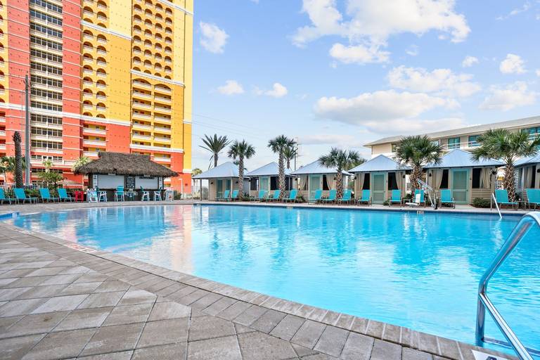 Calypso Resort Tower 3 welcomes guests to newest high rise building in Panama City Beach in more than a decade. Guests will enjoy the pool area with private cabanas and beach access within 200 yards. This family friendly resort enjoys being next to Pier Park making it the perfect place to spend your next beach vacation.