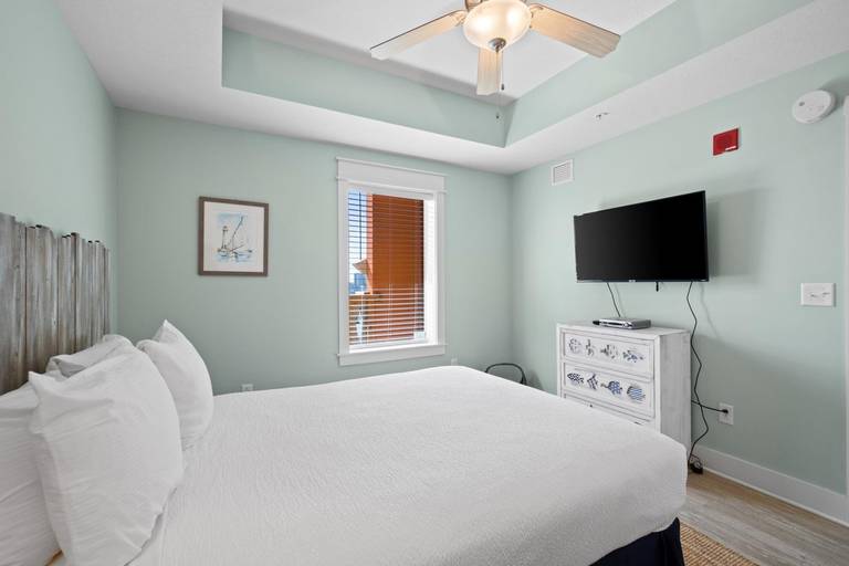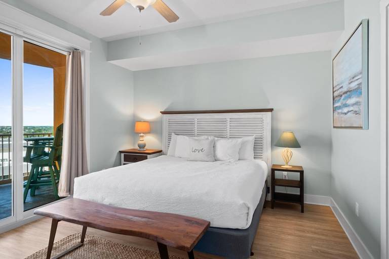 * Bedroom 1 - King Bed, TV, Balcony Access, En Suite Bathroom
