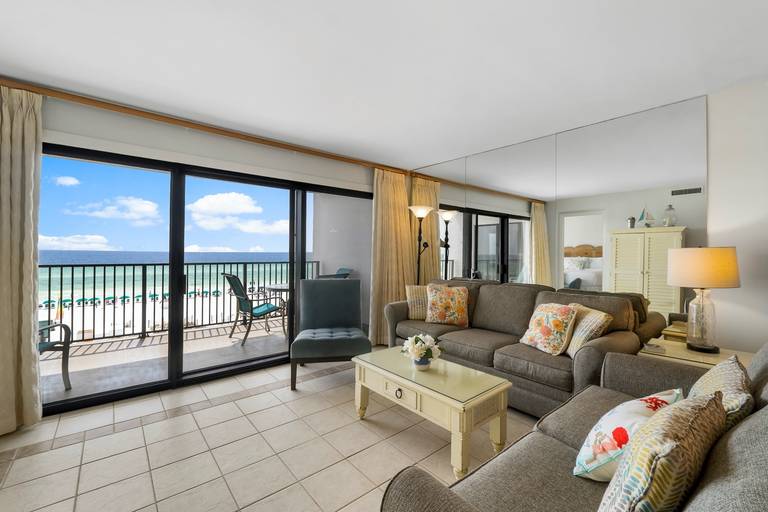 Emerald Towers Beach Resort rental 404 located in Destin, Florida by Panhandle Getaways is a 2 bedroom, 2 bathroom beachfront vacation home complete with all of the conveniences of home. Free Round of Golf Daily Included