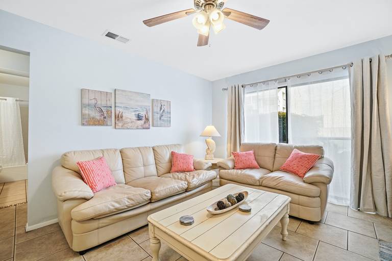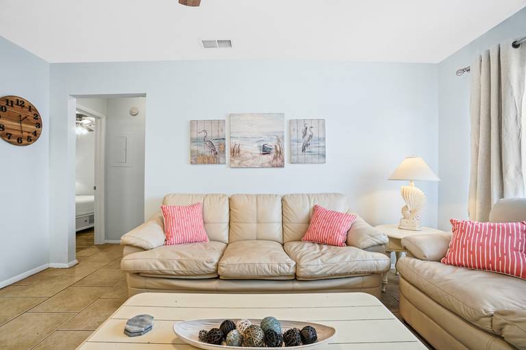 Panhandle Getaways furnishes a few essential items for guests to utilize until they can get to the grocery store. Initial Supplies include: Dishwasher soap, small washing machine powder, each bathroom has amenities (like hotel but NOT restocked) shampoo, conditioner, soap bar. One roll of toilet paper in each bathroom and one paper towel roll in the kitchen. All bed linens and towels are provided. We encourage guests to bring beach towels for use at the pool and beach.