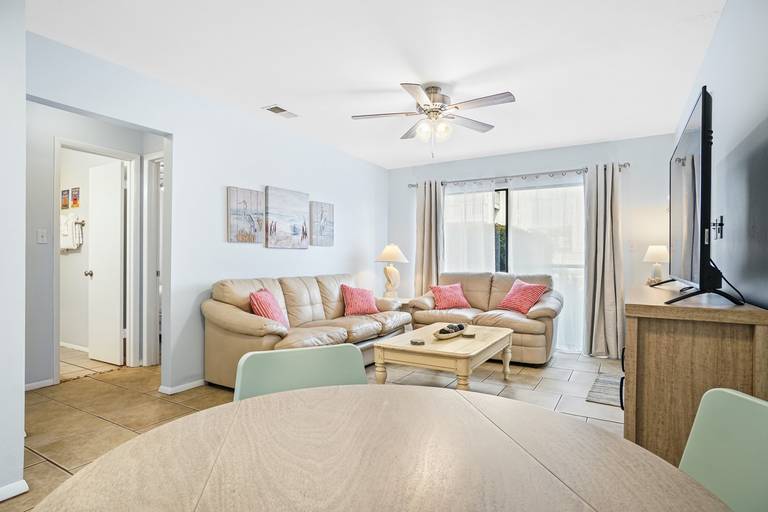 Endless Summer Resort rentals A14 in Panama City Beach, FL by Panhandle Getaways is a 2 bedroom, 1 bathroom vacation home complete with all of the conveniences of home. Located across the street from the beach and with a literal 2 minute walk you will be on the beach with your feet in the sand. FREE ROUND OF GOLF EACH DAY INCLUDED & MORE!