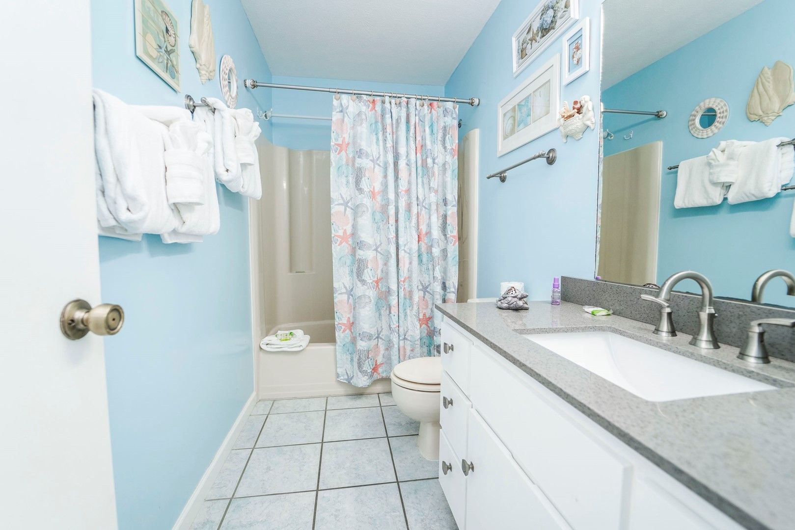 Panhandle Getaways furnishes a few essential items for guests to utilize until they can get to the grocery store. Initial Supplies include: Dishwasher soap, small washing machine powder, each bathroom has amenities (like hotel but NOT restocked) shampoo, conditioner, soap bar. One roll of toilet paper in each bathroom and one paper towel roll in the kitchen. All bed linens and towels are provided. We encourage guests to bring beach towels for use at the pool and beach.