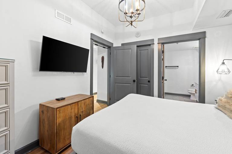 * Bedroom 1 - Queen Bed, TV, En Suite Bathroom
