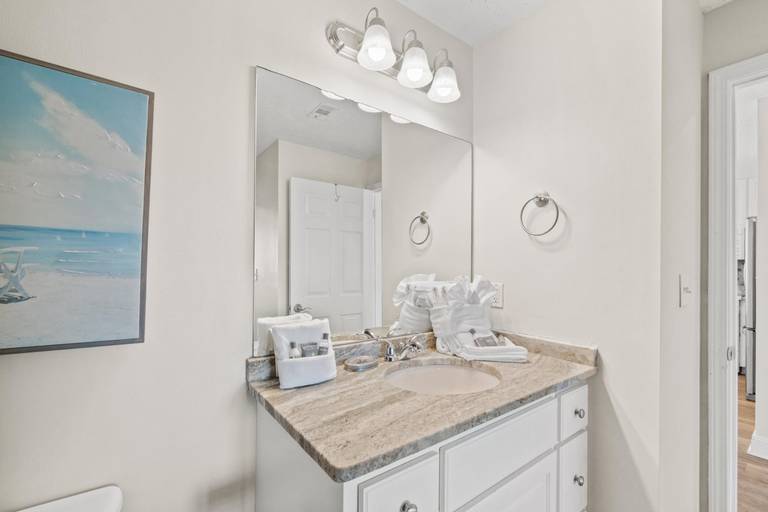 Panhandle Getaways furnishes a few essential items for guests to utilize until they can get to the grocery store. Initial Supplies include: Dishwasher soap, small washing machine powder, each bathroom has amenities (like hotel but NOT restocked) shampoo, conditioner, soap bar. One roll of toilet paper in each bathroom and one paper towel roll in the kitchen. All bed linens and towels are provided. We encourage guests to bring beach towels for use at the pool and beach.