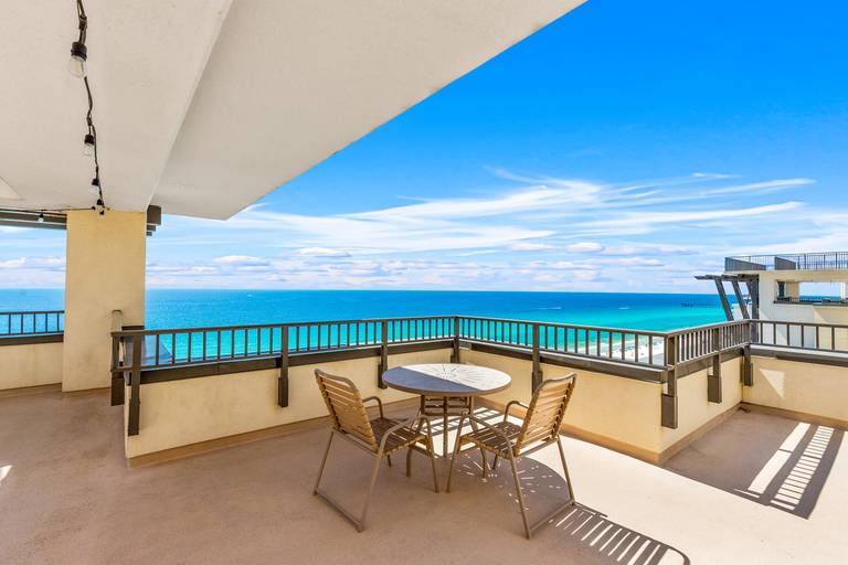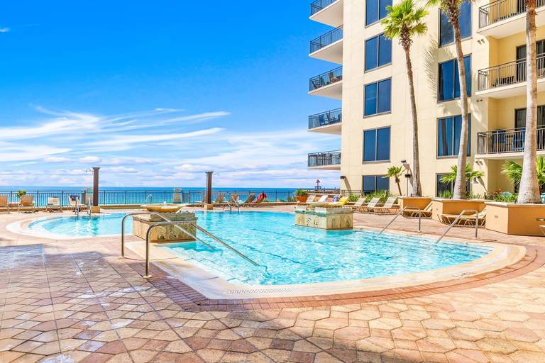 Guests will enjoy the convenience of a fully equipped kitchen or kitchenette, spacious living areas, private balconies, and contemporary decor designed to complement the laid-back beach atmosphere. Resort-style amenities include a rooftop pool with stunning Gulf views, a state-of-the-art fitness center, an on-site theater room, and a game room.