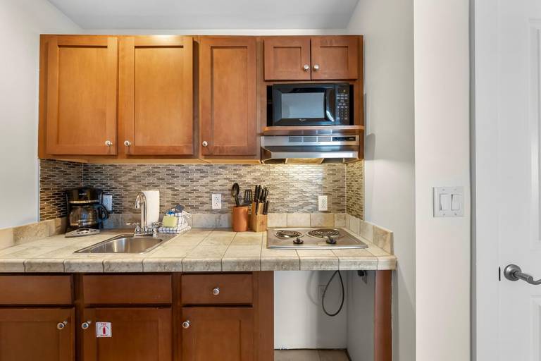 * Kitchenette - Small Fridge, Microwave, Stove Top and Coffee Maker