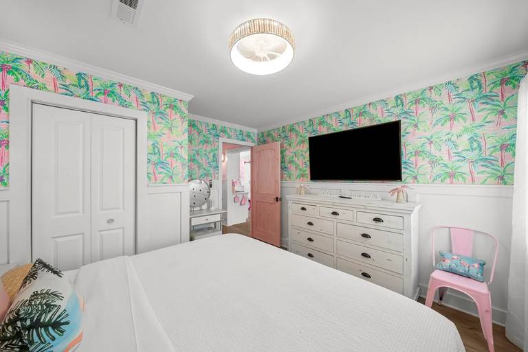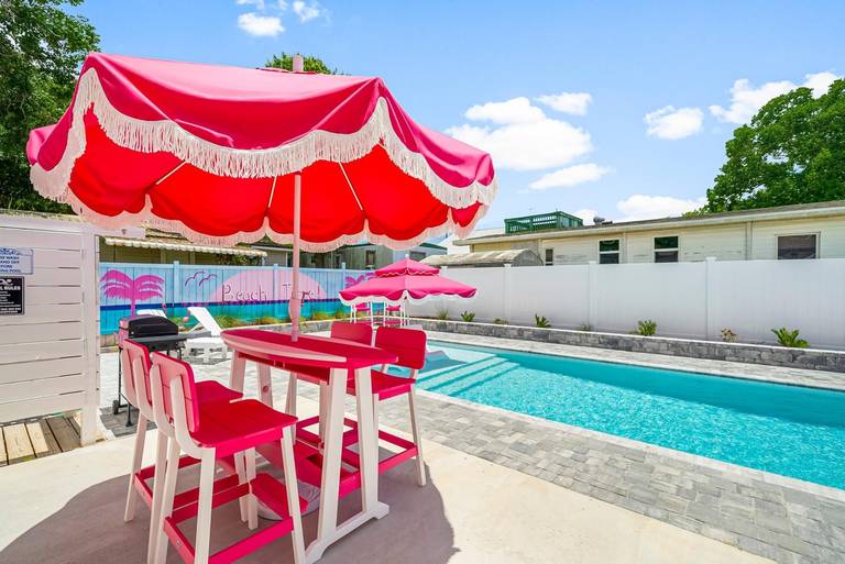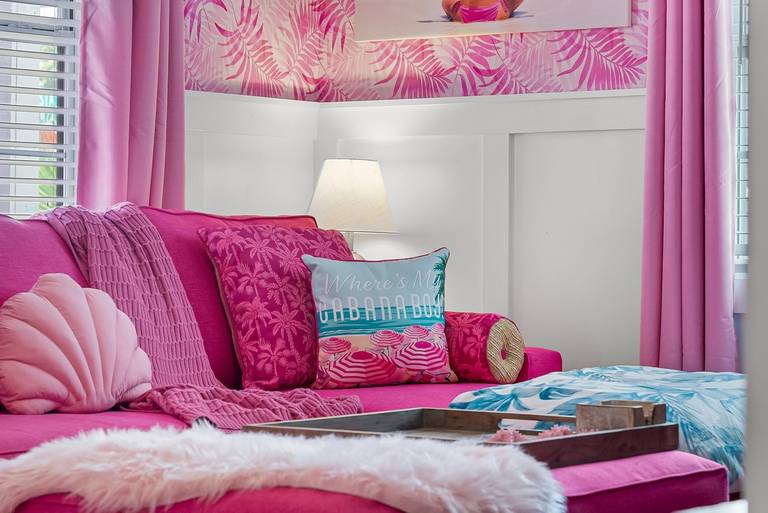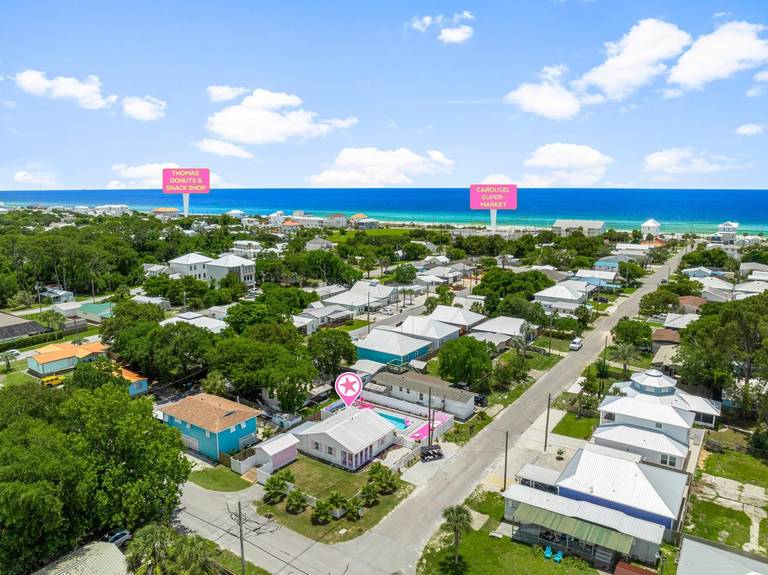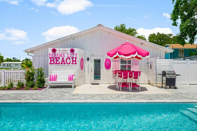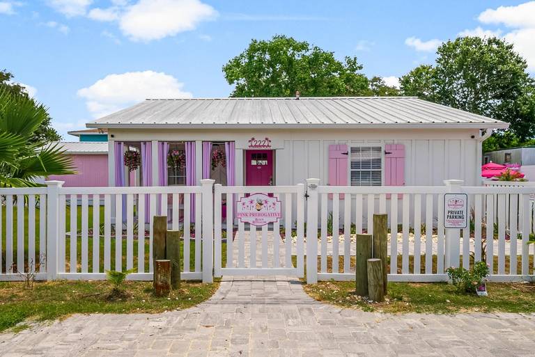 Pink Prerogative by Panhandle Getaways is a one-of-a-kind, all-pink beach bungalow in Panama City Beach, FL, complete with a private pool, 6-seater golf cart, and vibrant outdoor entertainment space. Located on the quiet West End near Laguna Beach, this home delivers a truly picture-perfect vacation experience.
